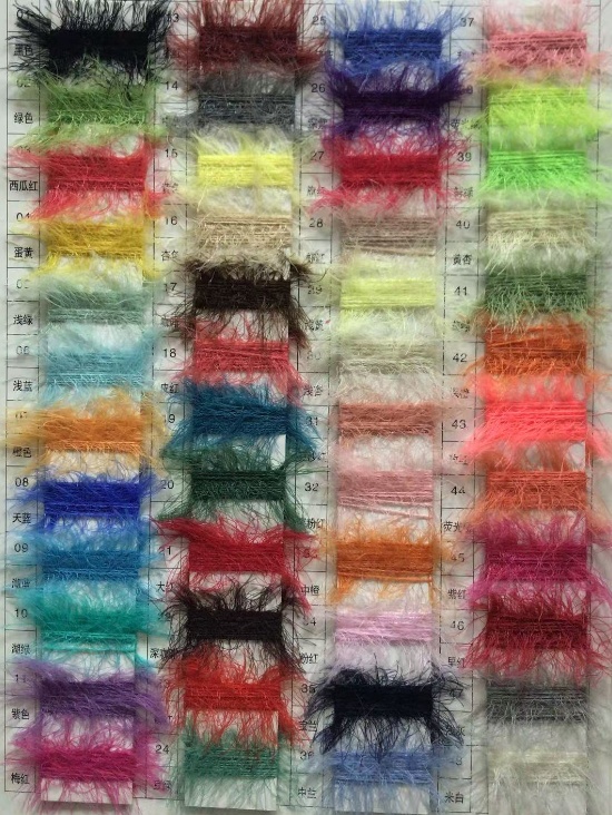 깃털사는 다양한 섬유사로 제작될 수 있으며, 현재 비스코스, 나일론, 아크릴, 폴리에스터가 널리 사용됩니다. 깃털의 "트렁크" 부분은 핵심 실이며, 그 원료의 품질과 성능은 편직사의 요건을 충족해야 합니다. 장식사는 깃털사의 주요 성능 부분으로, 완제품의 감각적 효과를 결정합니다.